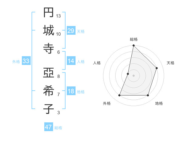 円城寺 亞希子さんを姓名の画数から五運を鑑定