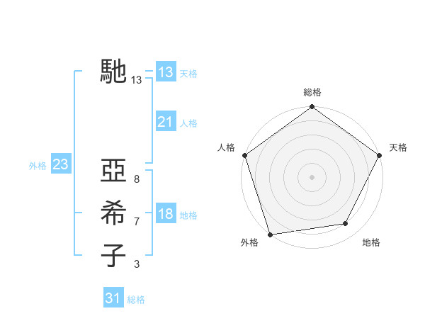 馳 亞希子さんの人格は21画の5点!