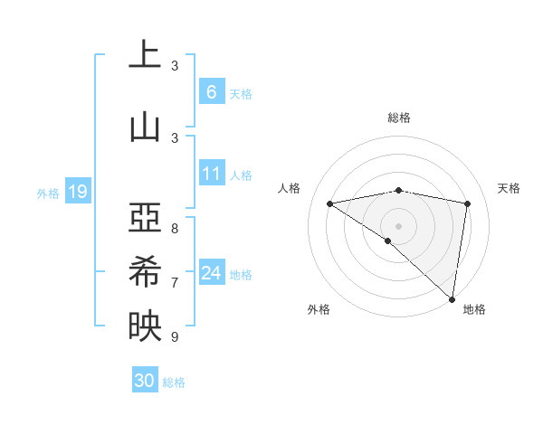 上山 亞希映さんを姓名の画数から五運を鑑定