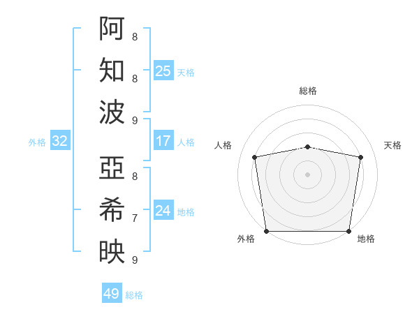 阿知波 亞希映さんを姓名の画数から五運を鑑定