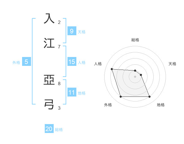 入江 亞弓さんを姓名の画数から五運を鑑定