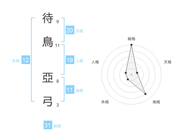 待鳥 亞弓さんの総格は31画の5点!