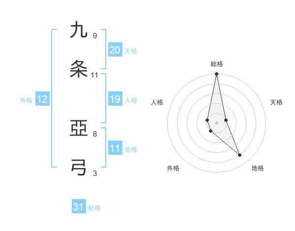 九条 亞弓さんを姓名の画数から五運を鑑定