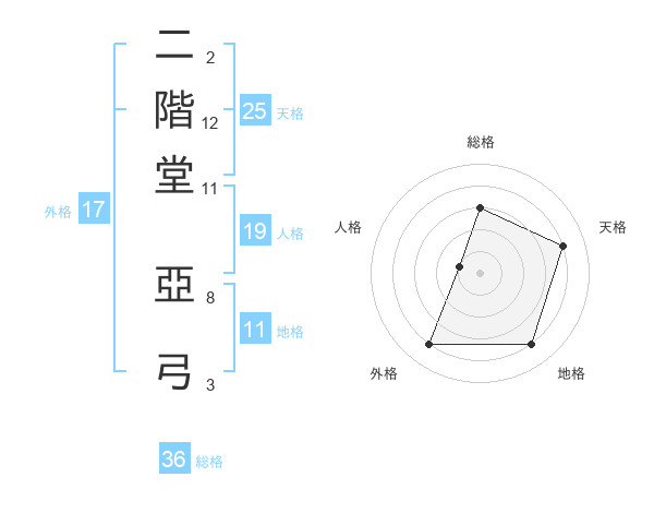 二階堂 亞弓さんの天格は25画の4点!