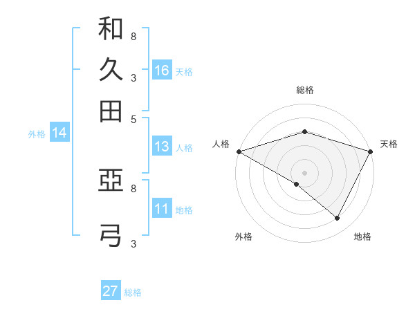 和久田 亞弓さんを姓名の画数から五運を鑑定