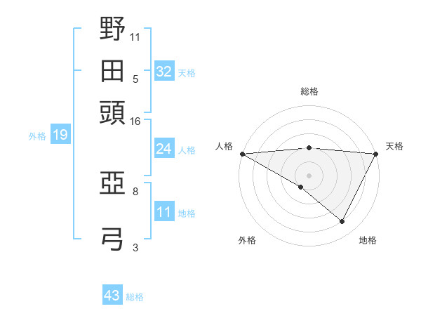野田頭 亞弓さんの総格は43画の2点!