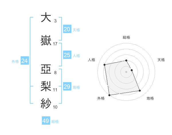 大嶽 亞梨紗さんを姓名の画数から五運を鑑定