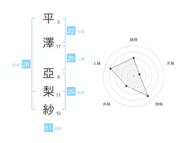 平澤 亞梨紗さんを姓名の画数から五運を鑑定