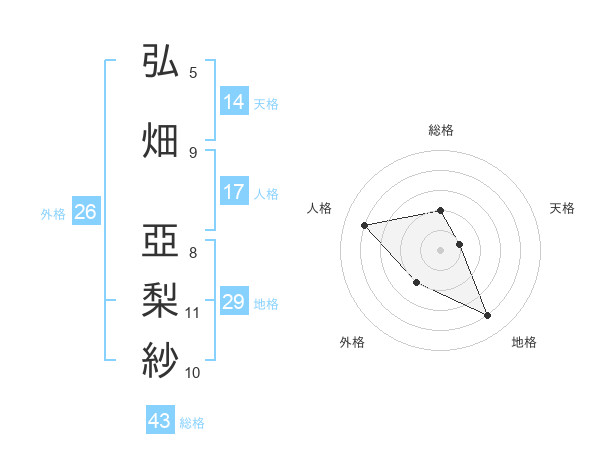 弘畑 亞梨紗さんを姓名の画数から五運を鑑定