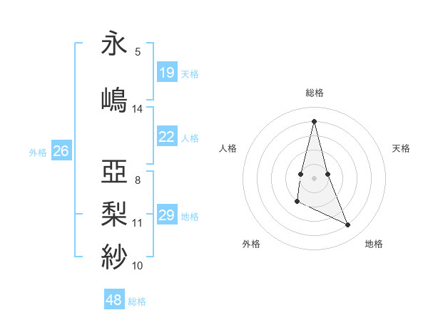 永嶋 亞梨紗さんを姓名の画数から五運を鑑定