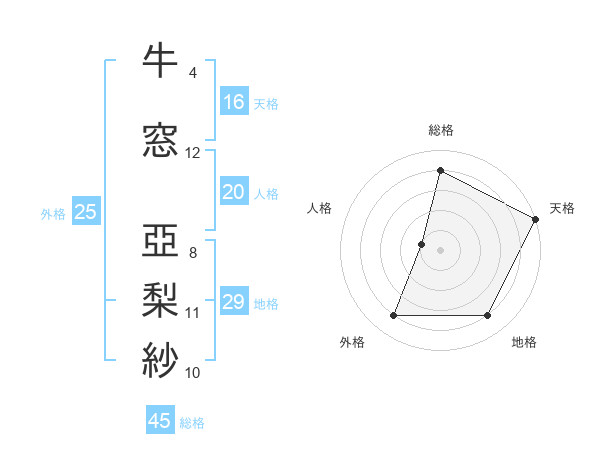 牛窓 亞梨紗さんを姓名の画数から五運を鑑定