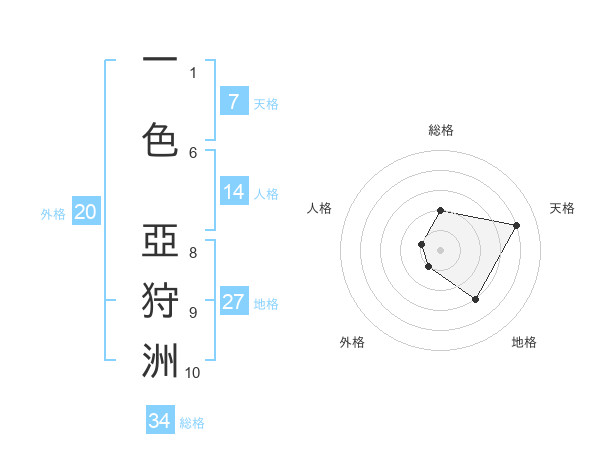 一色 亞狩洲さんの天格は7画の4点!