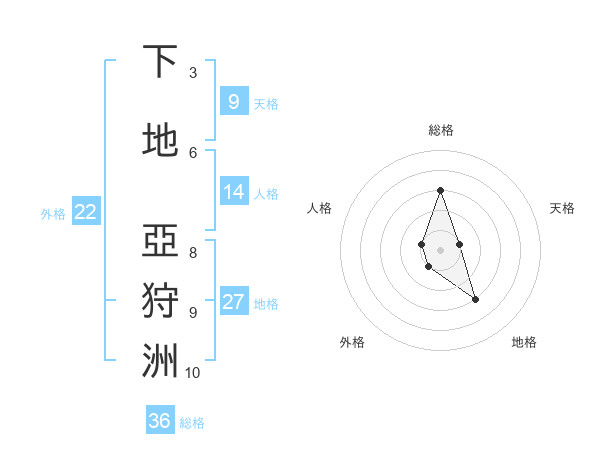 下地 亞狩洲さんの総格は36画の3点!