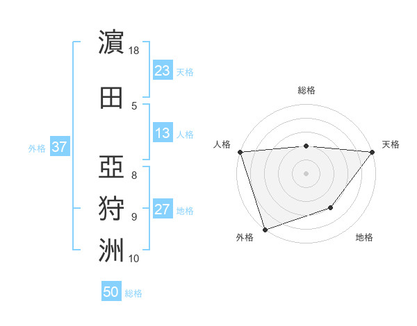 濵田 亞狩洲さんを姓名の画数から五運を鑑定