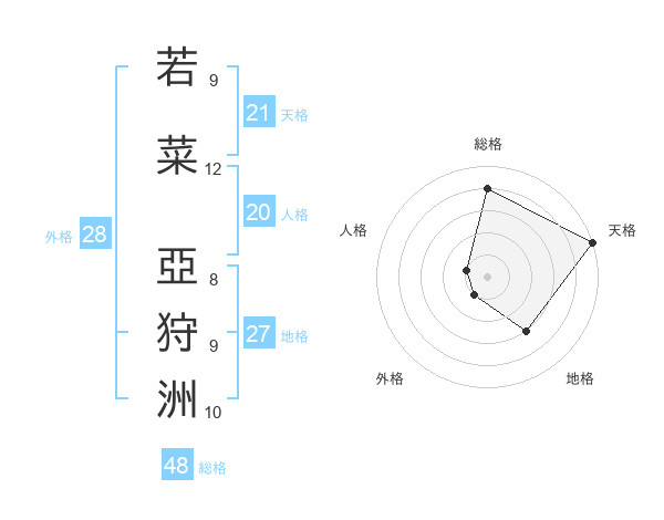 若菜 亞狩洲さんを姓名の画数から五運を鑑定