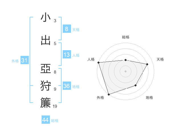 小出 亞狩簾さんの外格は31画の5点!