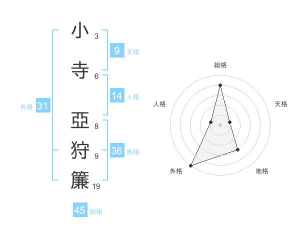 小寺 亞狩簾さんの総格は45画の4点!