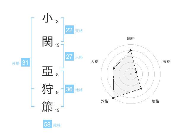 小関 亞狩簾さんの外格は31画の5点!