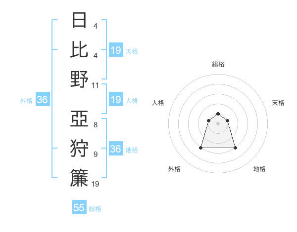 日比野 亞狩簾さんを姓名の画数から五運を鑑定