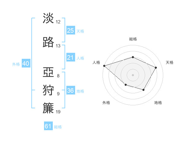 淡路 亞狩簾さんの総格は61画の3点!