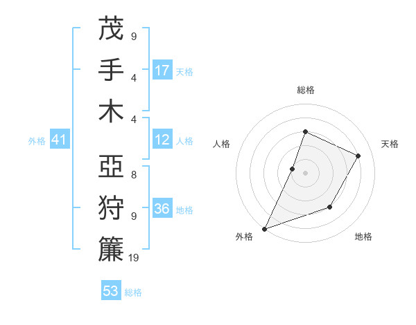 茂手木 亞狩簾さんを姓名の画数から五運を鑑定