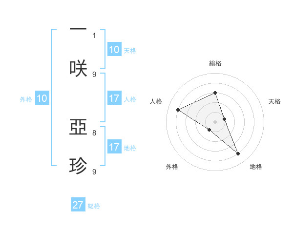 一咲 亞珍さんの人格は17画の4点!