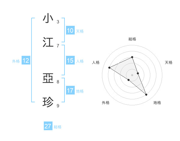 小江 亞珍さんを姓名の画数から五運を鑑定