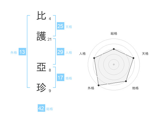 比護 亞珍さんの地格は17画の4点!