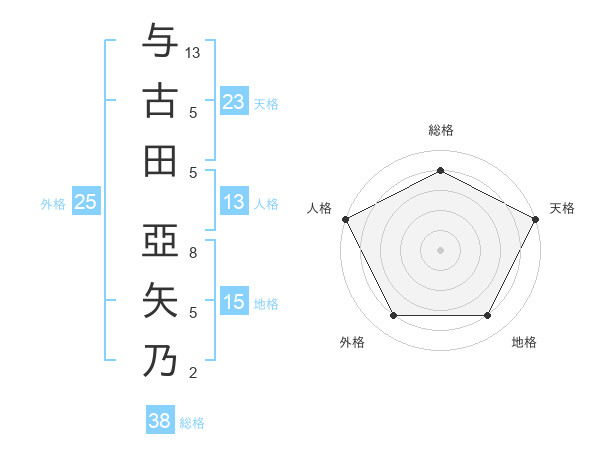 与古田 亞矢乃さんを姓名の画数から五運を鑑定