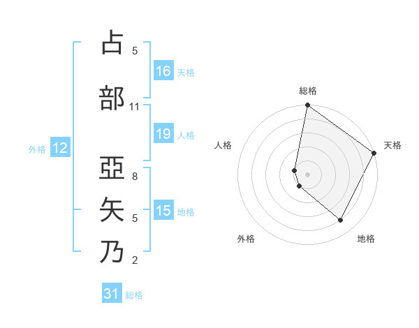 占部 亞矢乃さんを姓名の画数から五運を鑑定