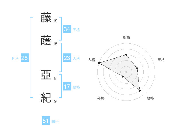 藤蔭 亞紀さんを姓名の画数から五運を鑑定