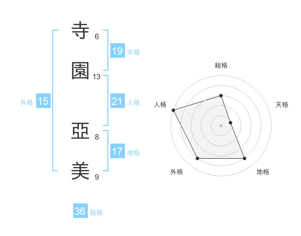 寺園 亞美さんの人格は21画の5点!