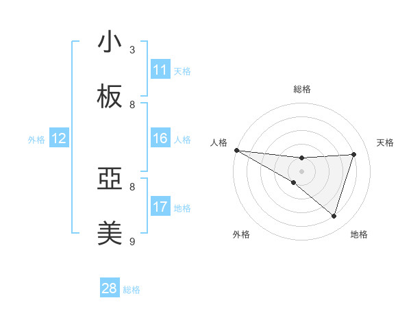小板 亞美さんの天格は11画の4点!