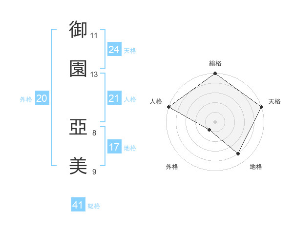 御園 亞美さんの天格は24画の5点!