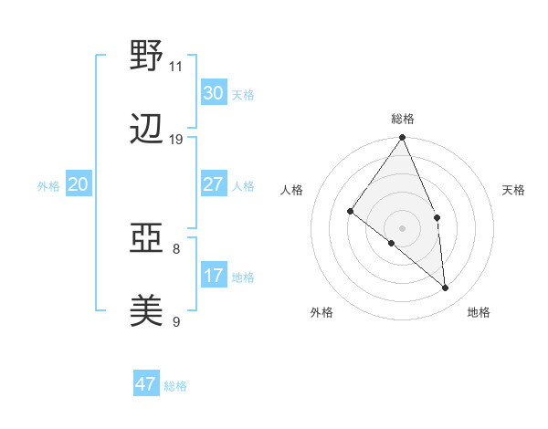 野辺 亞美さんの総格は47画の5点!