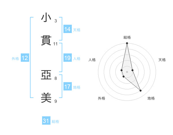 小貫 亞美さんの総格は31画の5点!