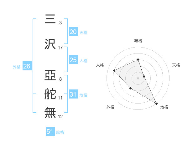 三沢 亞舵無さんを姓名の画数から五運を鑑定