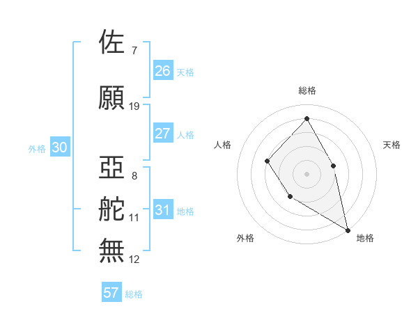 佐願 亞舵無さんを姓名の画数から五運を鑑定