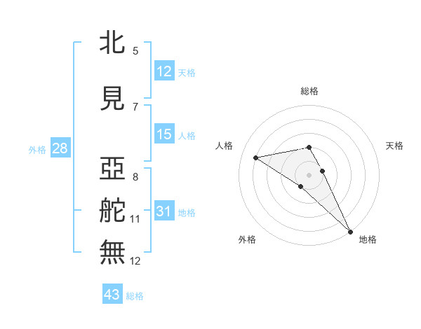 北見 亞舵無さんの総格は43画の2点!