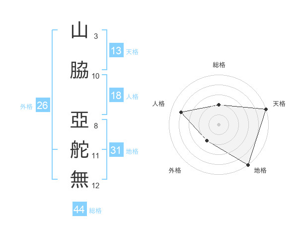 山脇 亞舵無さんを姓名の画数から五運を鑑定