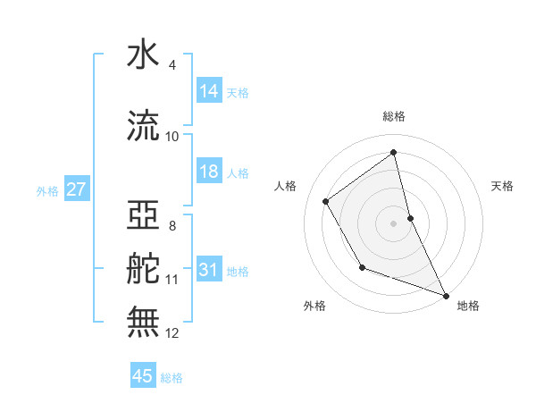 水流 亞舵無さんを姓名の画数から五運を鑑定