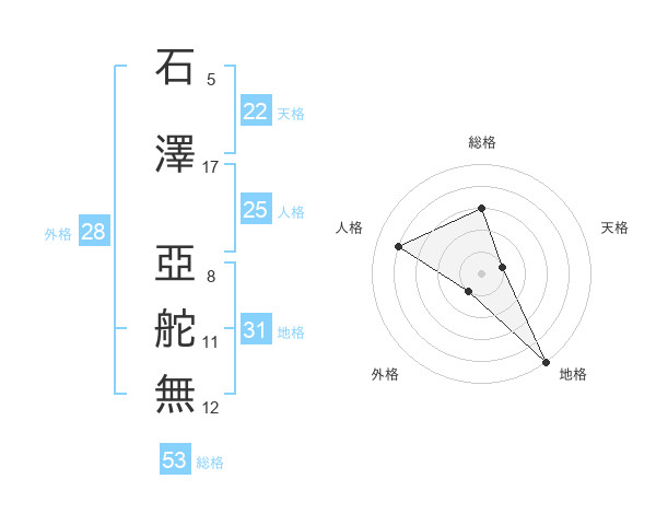 石澤 亞舵無さんを姓名の画数から五運を鑑定