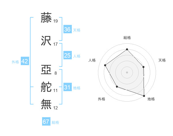 藤沢 亞舵無さんを姓名の画数から五運を鑑定
