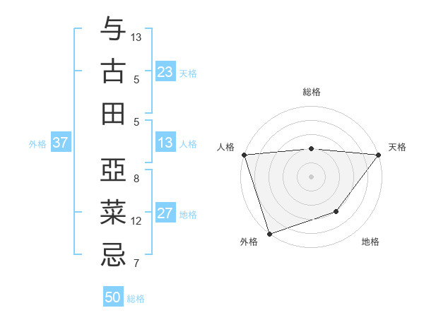 与古田 亞菜忌さんを姓名の画数から五運を鑑定