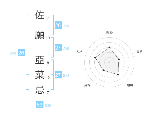 佐願 亞菜忌さんの総格は53画の3点!