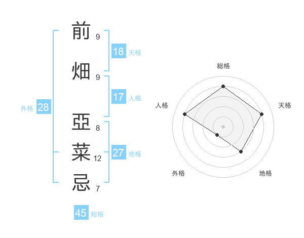 前畑 亞菜忌さんを姓名の画数から五運を鑑定