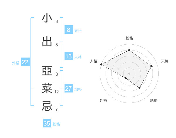 小出 亞菜忌さんの総格は35画の4点!