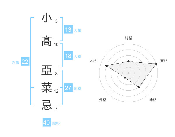 小髙 亞菜忌さんを姓名の画数から五運を鑑定