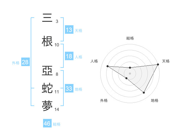 三根 亞蛇夢さんを姓名の画数から五運を鑑定