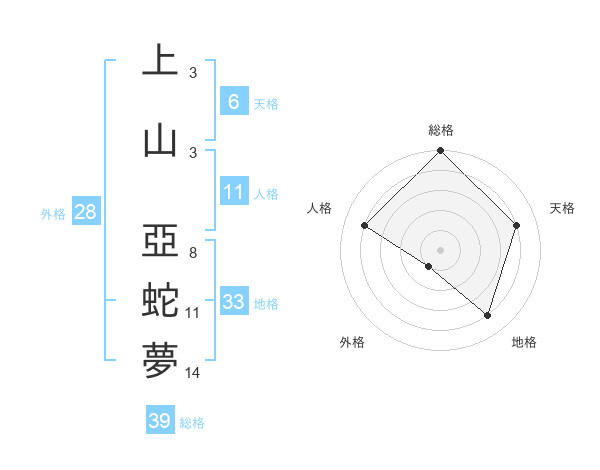 上山 亞蛇夢さんを姓名の画数から五運を鑑定